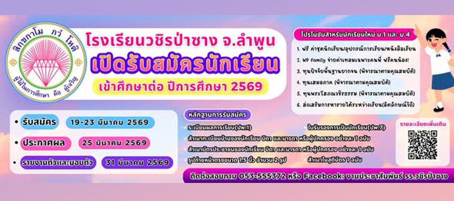 ประชาสัมพันธ์การรับนักเรียน โรงเรียนวชิรป่าซาง ปีการศีกษา 2566