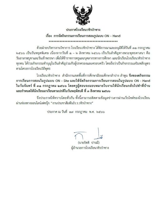| การจัดกิจกรรมการเรียนการสอนรูปแบบ On-hand |