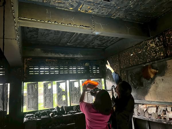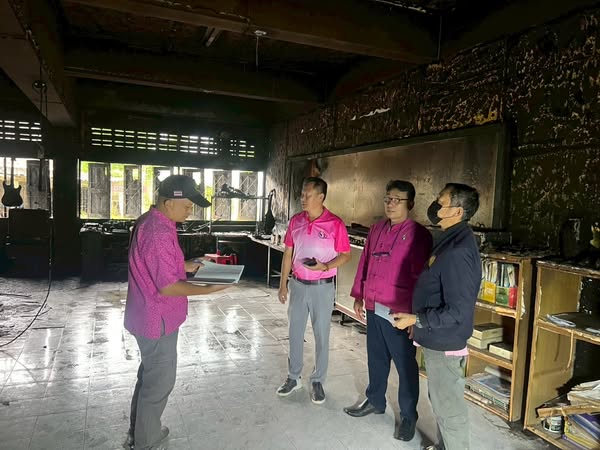 อบต.นครเจดีย์ ตรวจสอบเหตุการณ์ไฟไหม้ห้องดนตรี