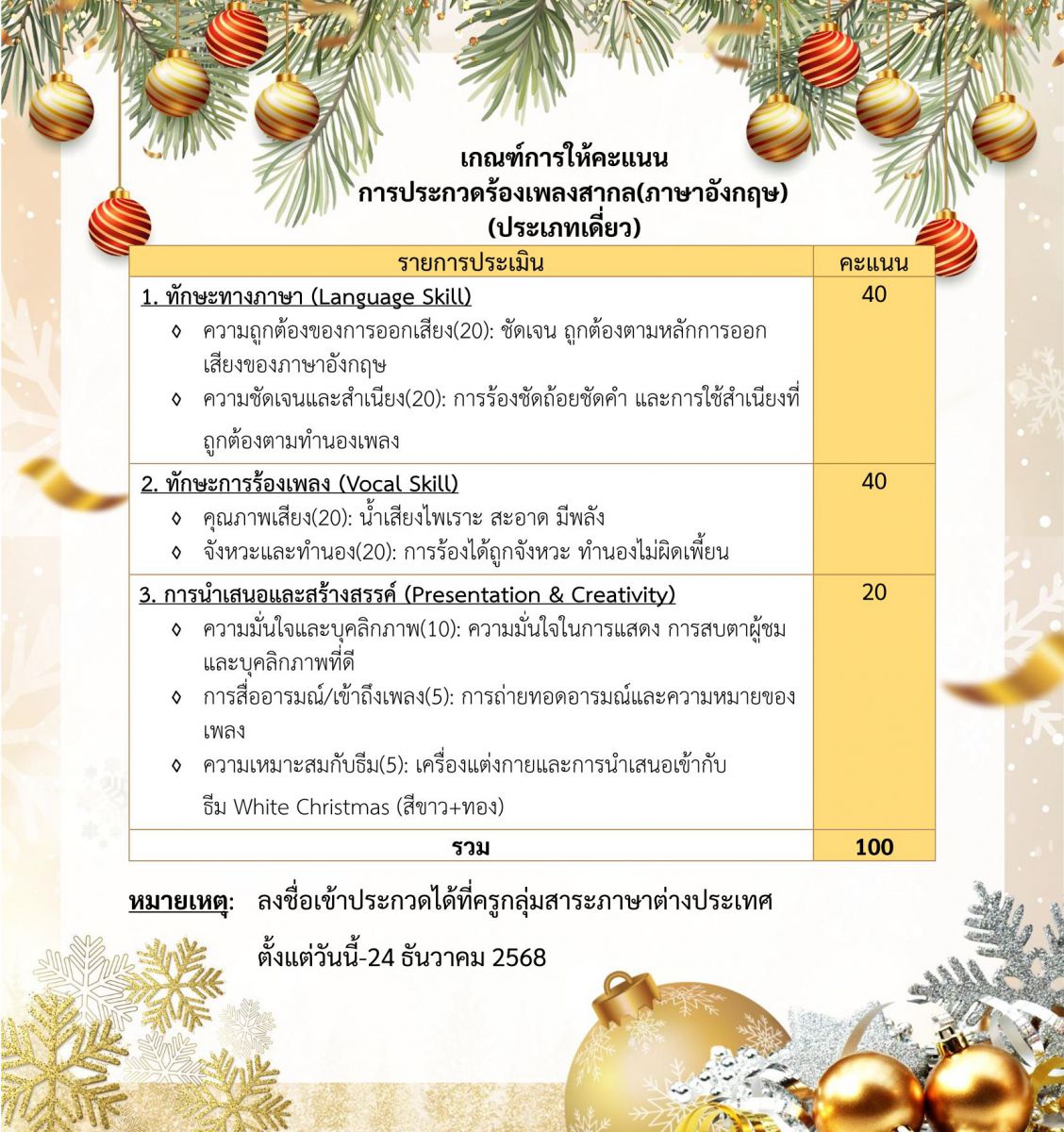 แจ้งเกณฑ์การประกวดร้องเพลงภาษาอังกฤษ