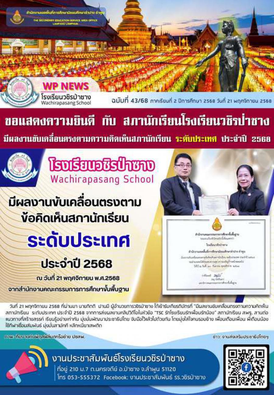 ฉบับที่ 43 ภาคเรียนที่2 ปีการศึกษา2568 วันที่ 21 พฤศจิกายน 2568