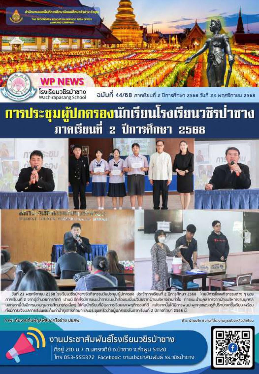 จดหมายข่าวประชาสัมพันธ์โรงเรียนวชิรป่าซาง ฉบับที่ 44/68