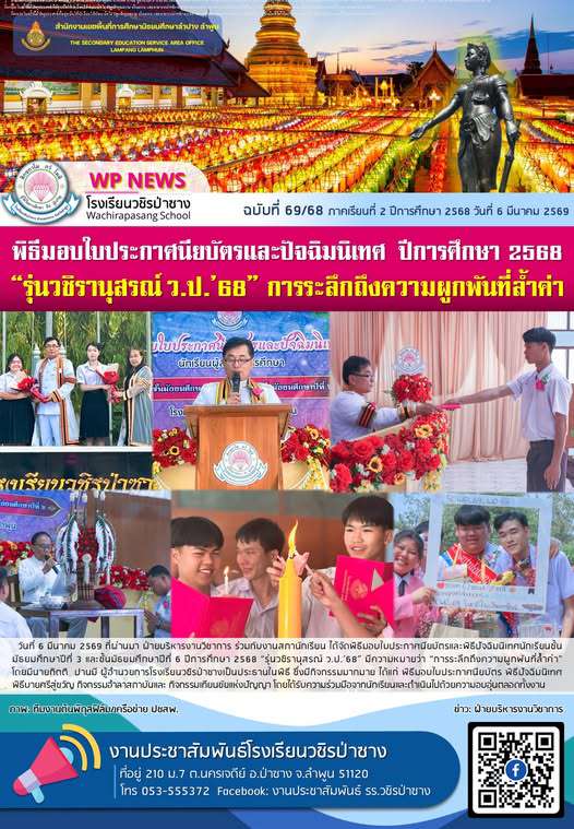 ฉบับที่ 69 ภาคเรียนที่2 ปีการศึกษา2568 วันที่ 6 มีนาคม 2569