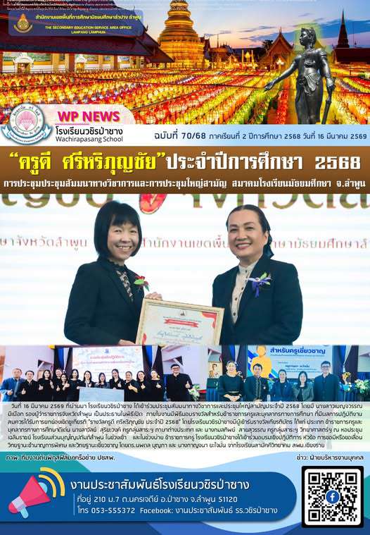 ฉบับที่ 70 ภาคเรียนที่2 ปีการศึกษา2568 วันที่ 16 มีนาคม 2569