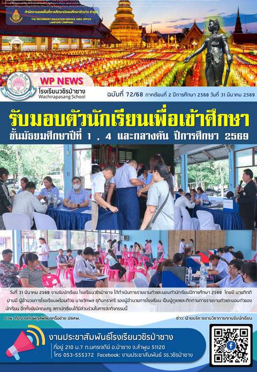 ฉบับที่ 72 ภาคเรียนที่2 ปีการศึกษา2568 วันที่ 31 มีนาคม 2569
