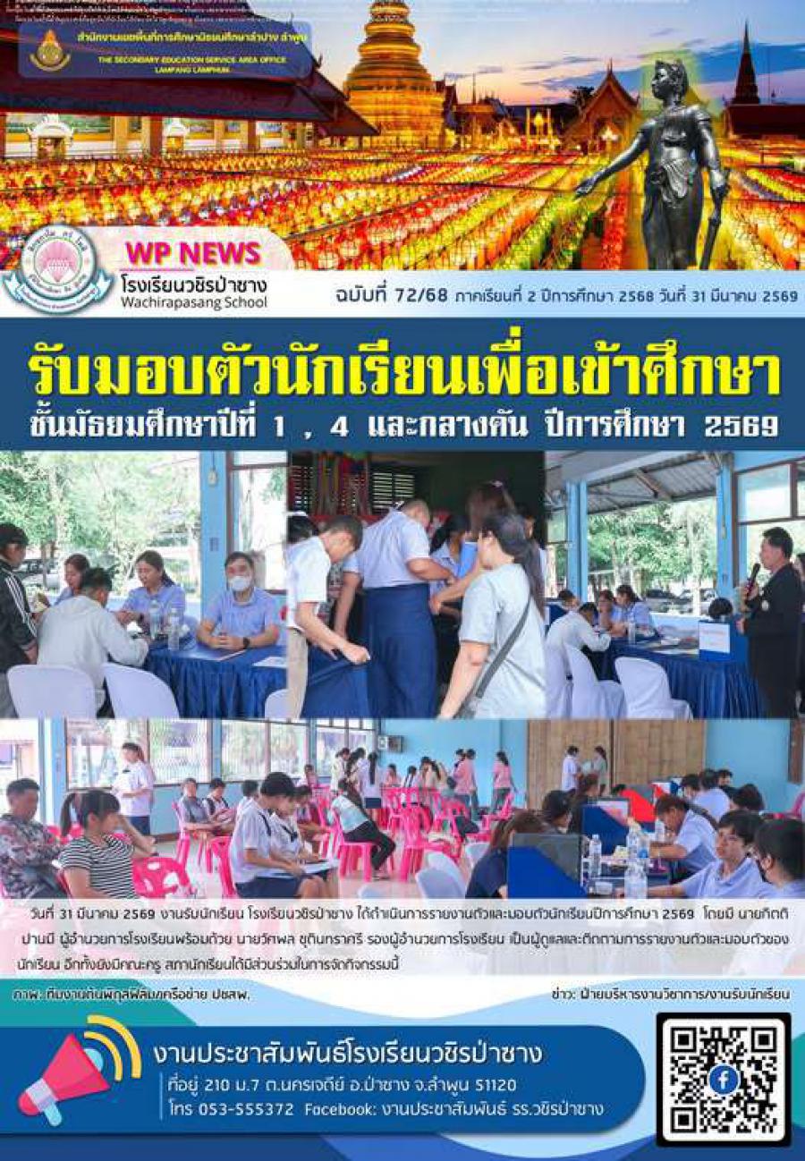 จดหมายข่าวประชาสัมพันธ์โรงเรียนวชิรป่าซาง ฉบับที่ 72/68